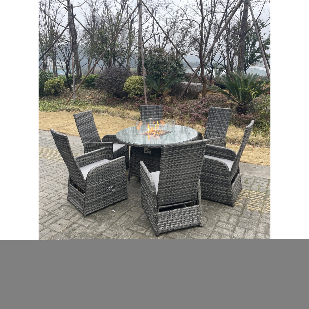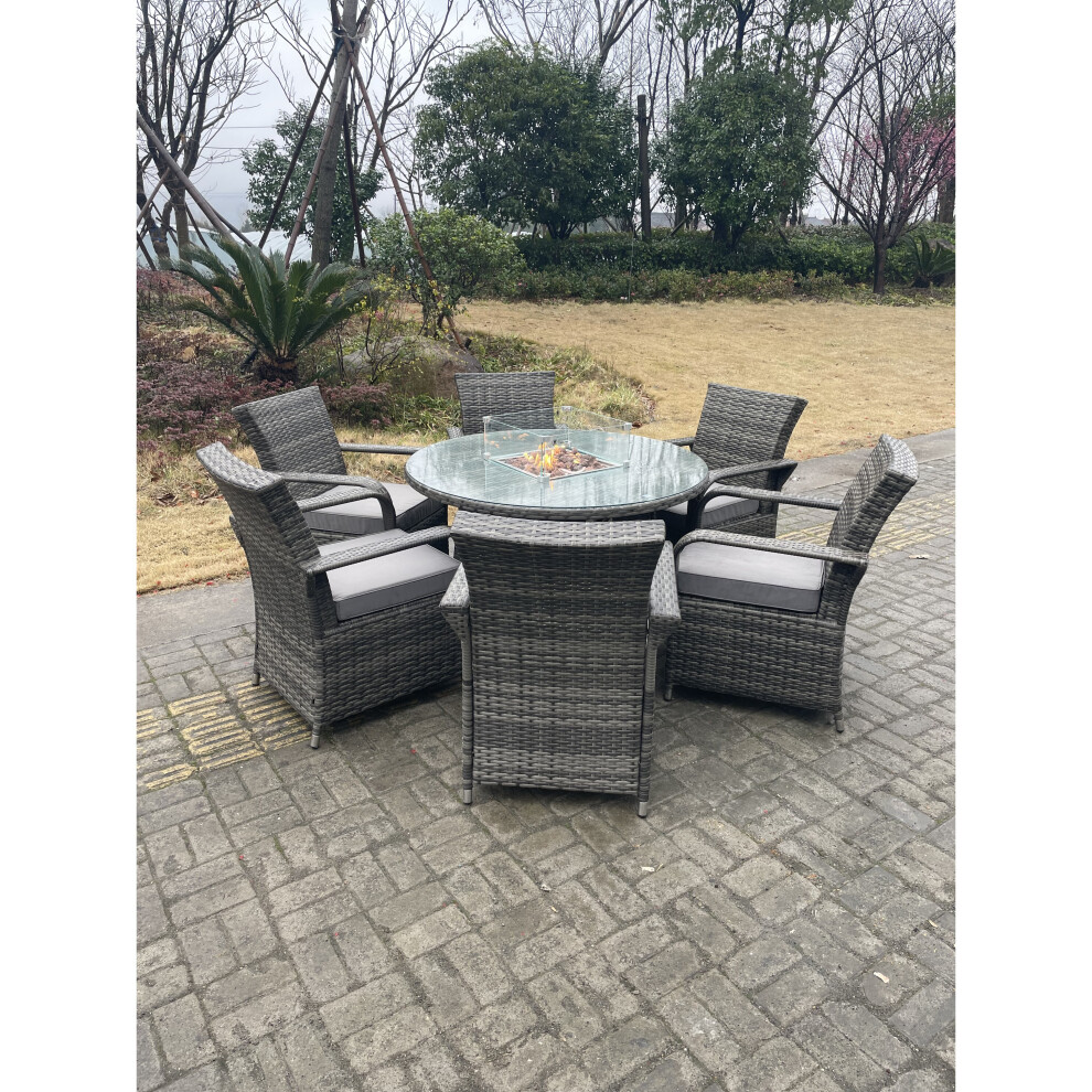 Fimous Rattan Garden Furniture Gas Fire Pit Round Table Chairs 6 Seater