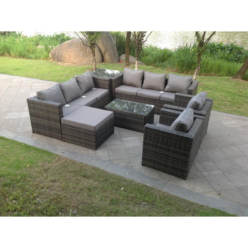 Fimous Outdoor Rattan Garden Furniture Sofa Set Lounge Sofa Small Footstools 8 Seater