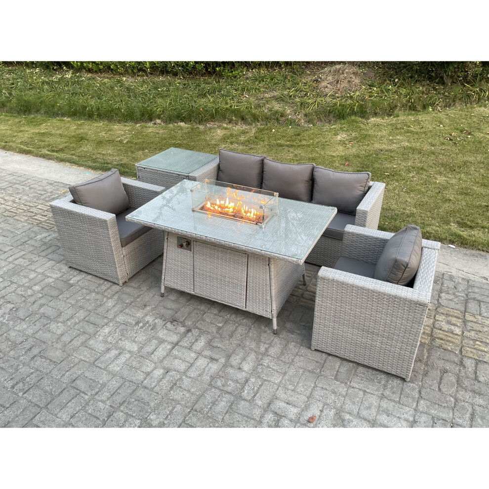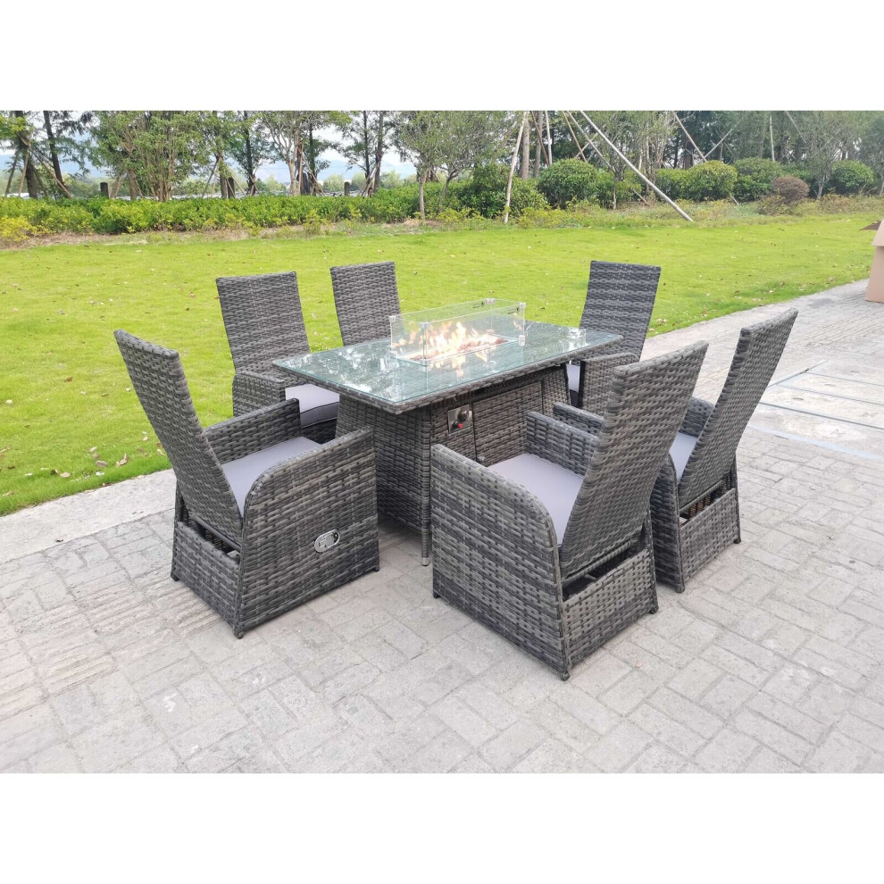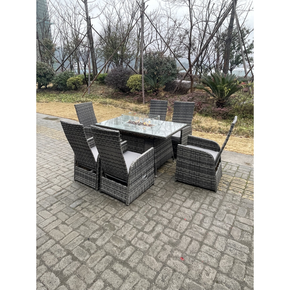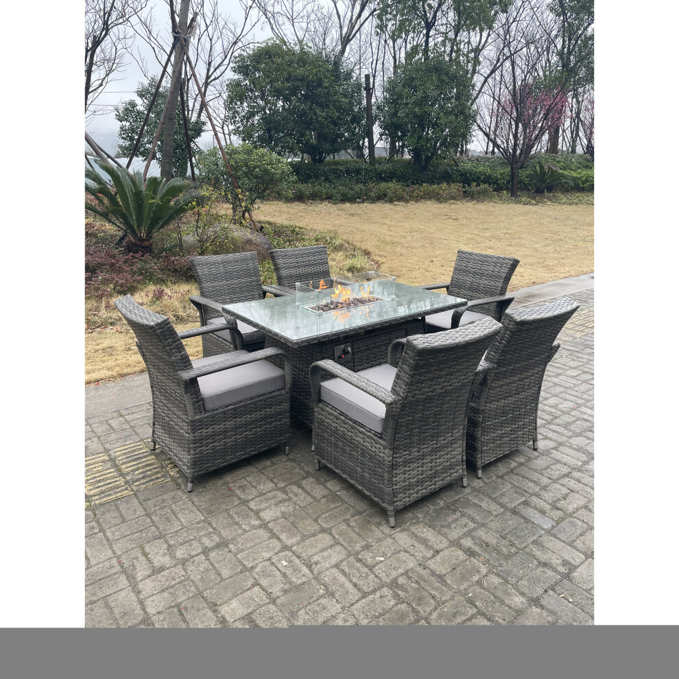 Fimous Rattan Garden Furniture Gas Fire Pit Rectangular Table Chairs 6 Seater