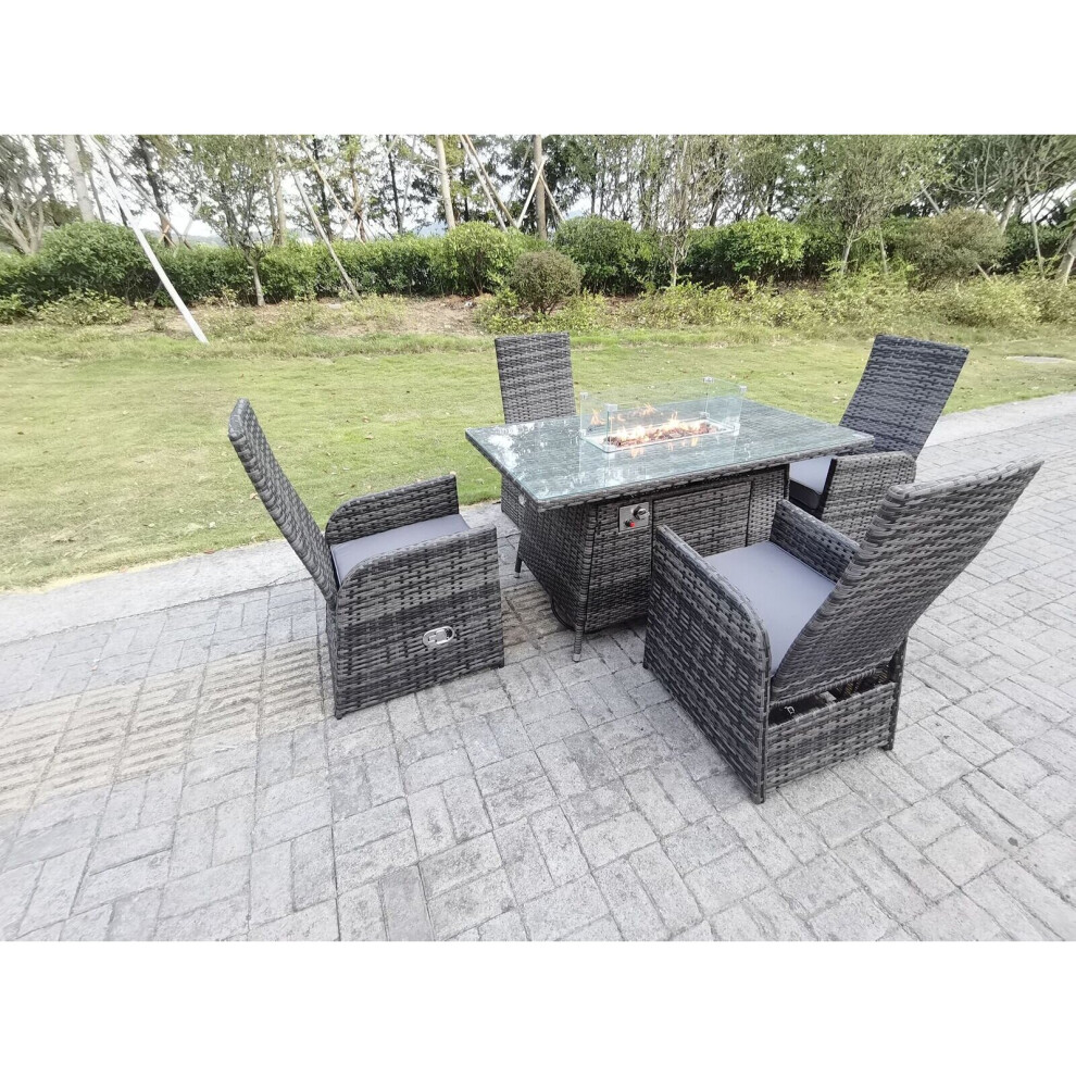 Fimous Rattan Garden Furniture Gas Fire Pit Rectangle Oblong Dining Table And Chairs 4 Seater