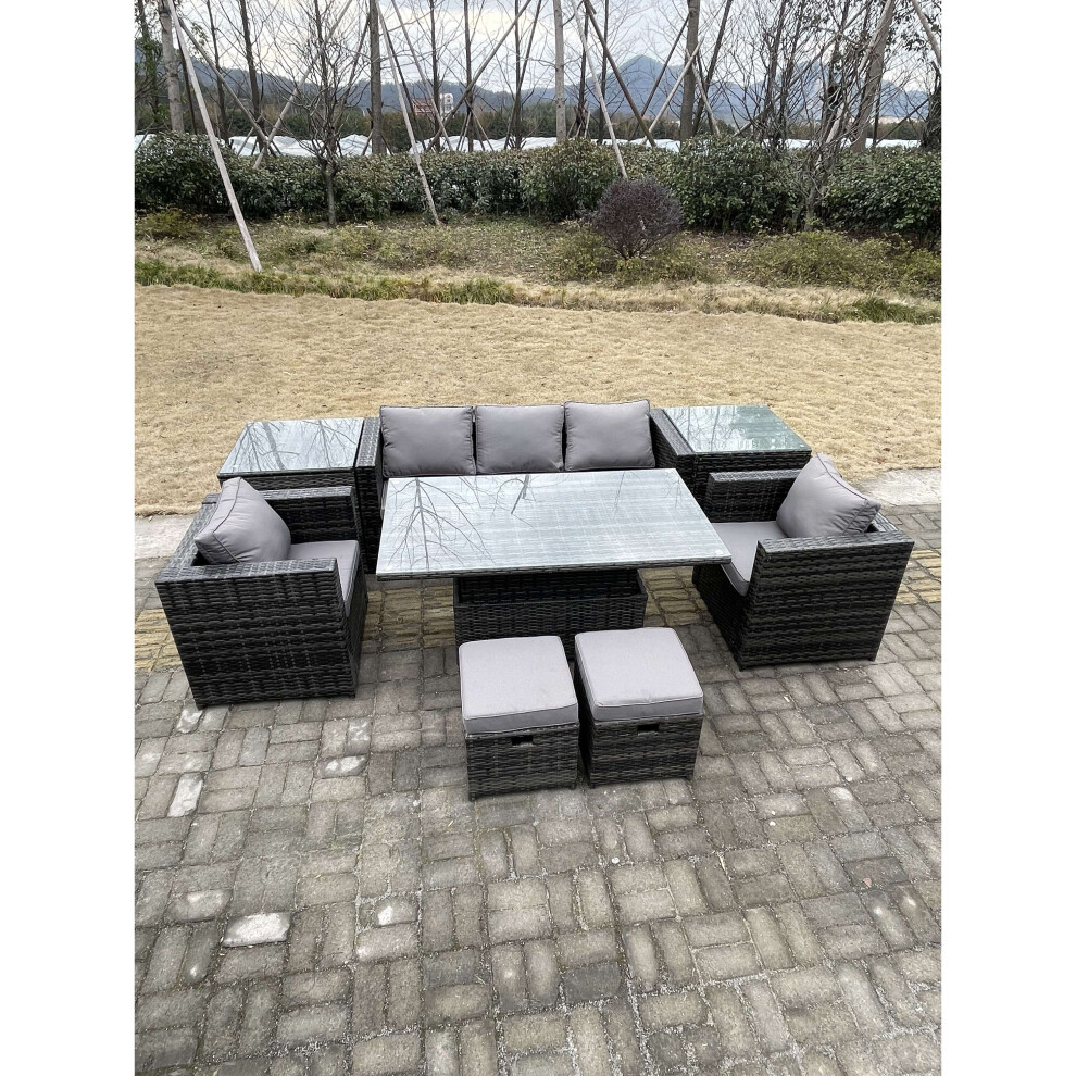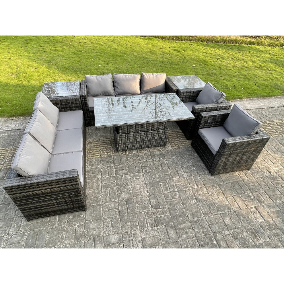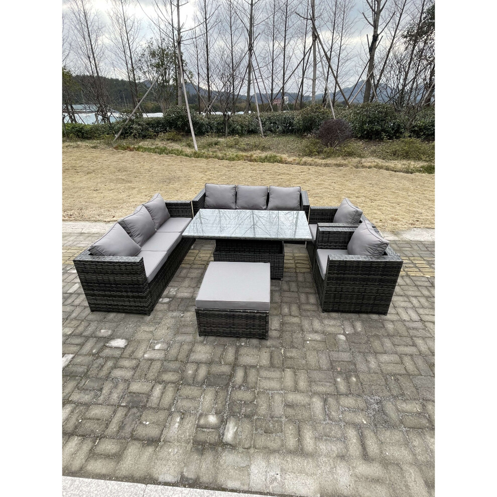 Fimous Outdoor Rattan Garden Furniture Sofa Set Dining Table Recling Armchairs 8 Seater