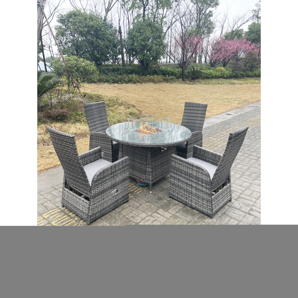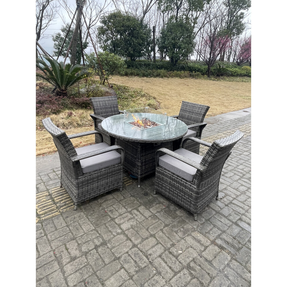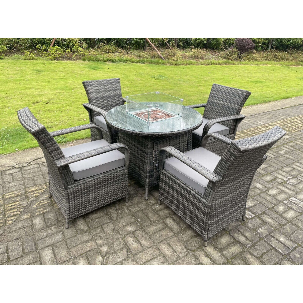 Fimous Rattan Garden Furniture Gas Fire Pit 4 Seater Plus Round Table