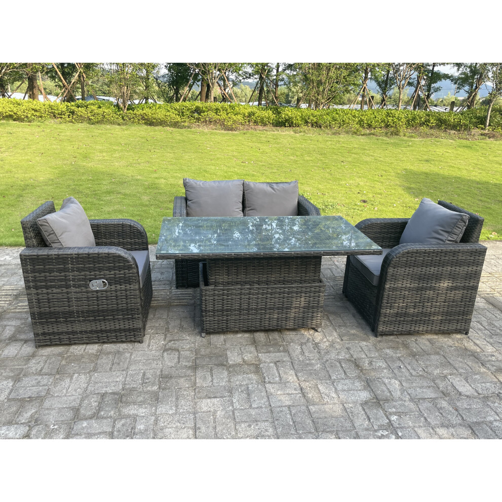 Fimous Lounge Rattan Garden Furniture Set Adjustable Rising Lifting Table Dining Set