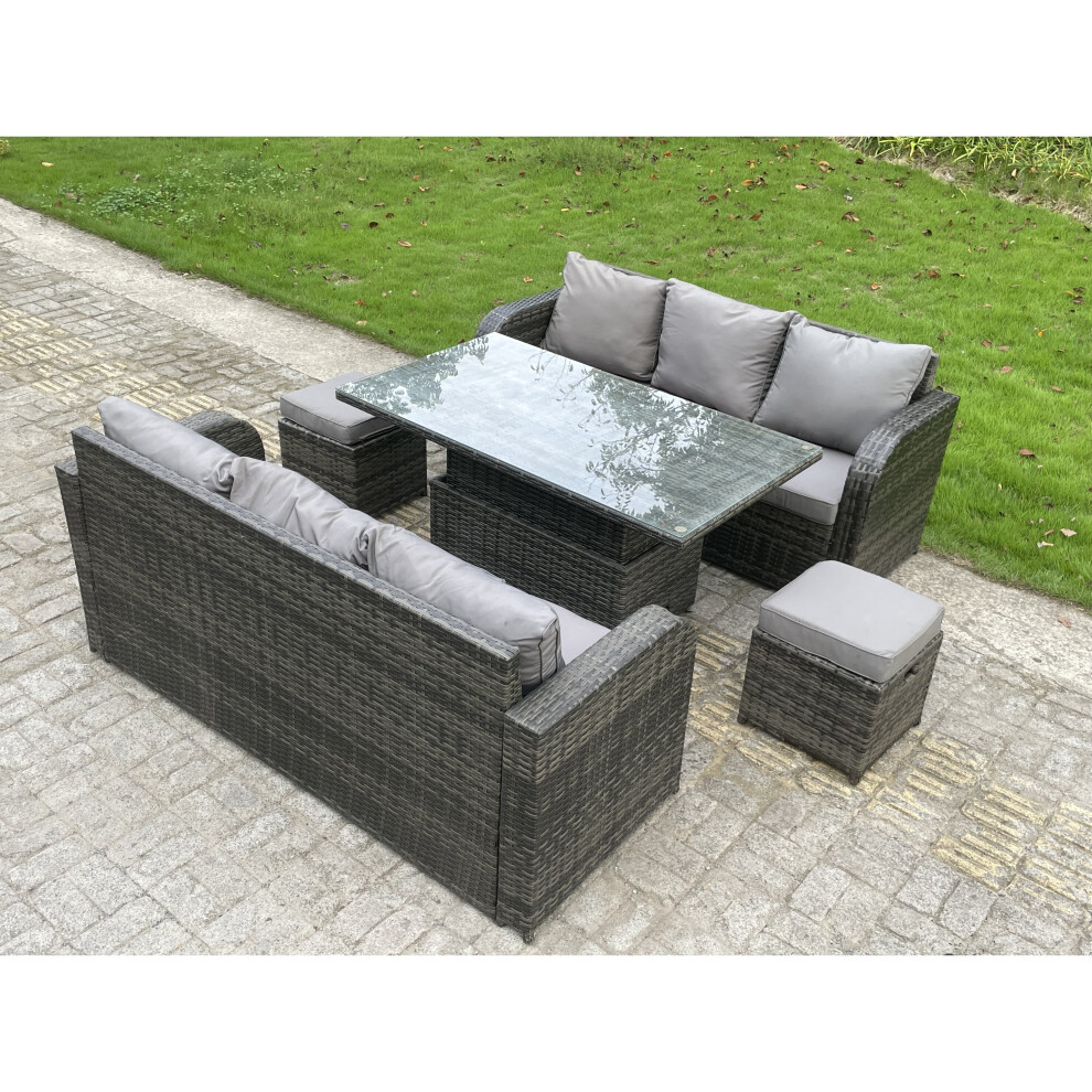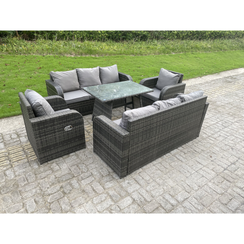 Fimous Rattan Garden Furniture Sofa Set Dining Table Rising Lifting Table 6 Seater