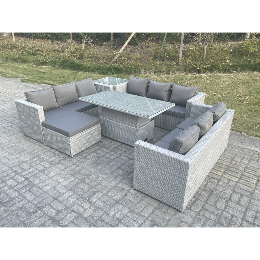 Fimous Rattan Garden Furniture Sofa Set Sofa Table Rising Lifting Table Armchairs 8 Seater
