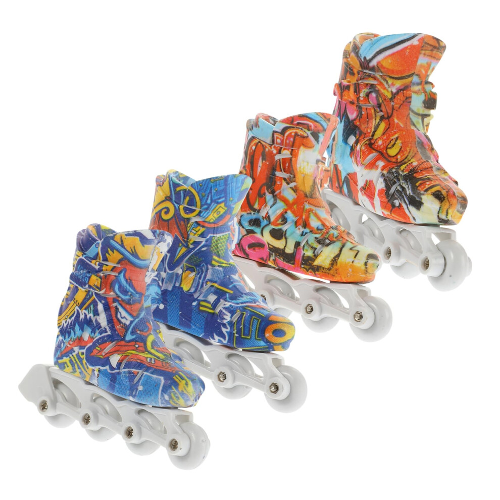 Abaodam 2 Pairs Mini Finger Roller Skates Lifelike Finger Skate Shoes Set with Random Patterns for Desk Play and Board Game Entertainment