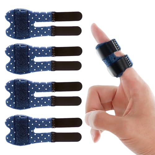 Hasny Finger Splint - 4pcs Breathable Thumb Splint Trigger Finger Splint for broken finger Straightening Arthritis Finger Brace Finger Splints for Thumb Middle Ring Index Pinky Finger (Blue)