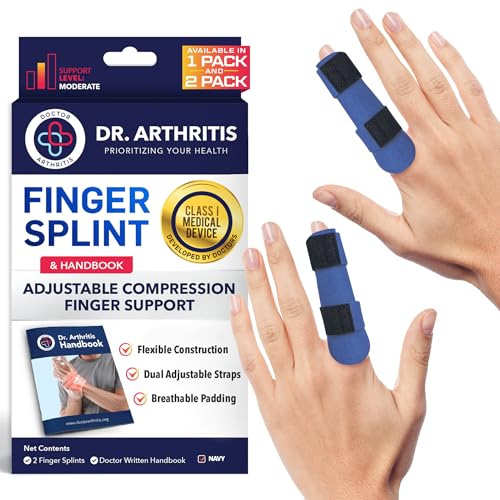 Doctor-Developed Trigger Finger Splint for Arthritis & Injury Recovery, Grip Support & Straightener Tool, Broken Finger Support that Fits Index, Middle, Ring, Pinky Joints (Navy Blue, S/M - 2 Pack)