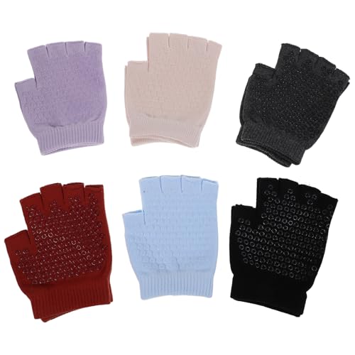 UPKOCH 6 Pairs Half Finger Yoga Gloves with Non-slip Grips, Breathable Warm Workout Gloves for Women and Men, Fingerless Fitness Mitts for Pilates, Weightlifting, Cycling, and Outdoor