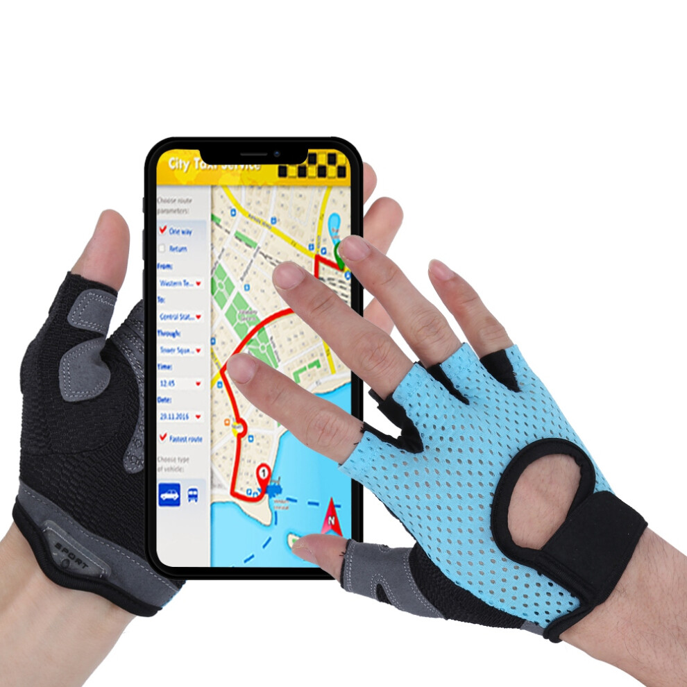 Fitness Exercise Gloves Anti-Skid Breathable Sports Training Half Finger Gloves for Yoga Blue(L )