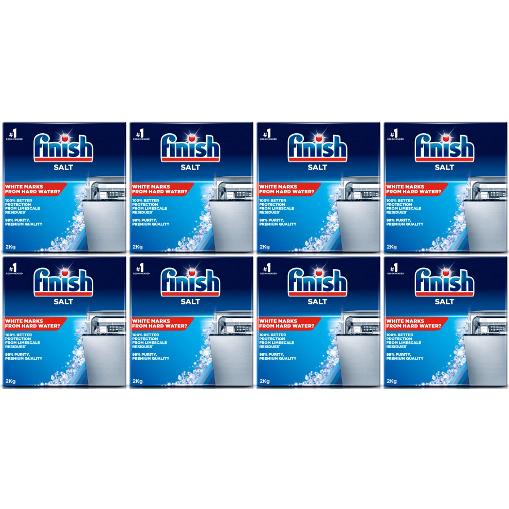 Finish Dishwasher Salt Box (Pack of 8, 2000 Grams) - Prevents Limescale Build-Up and Effective Against Hard Water