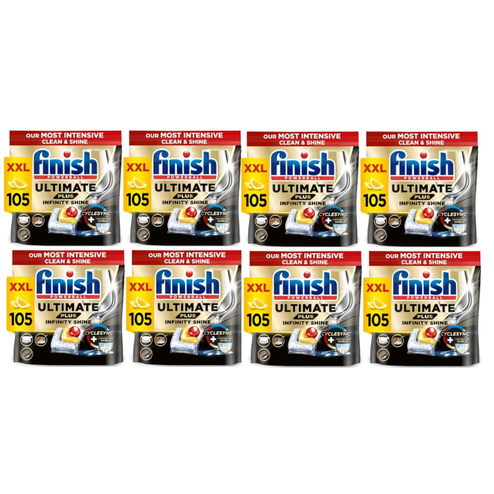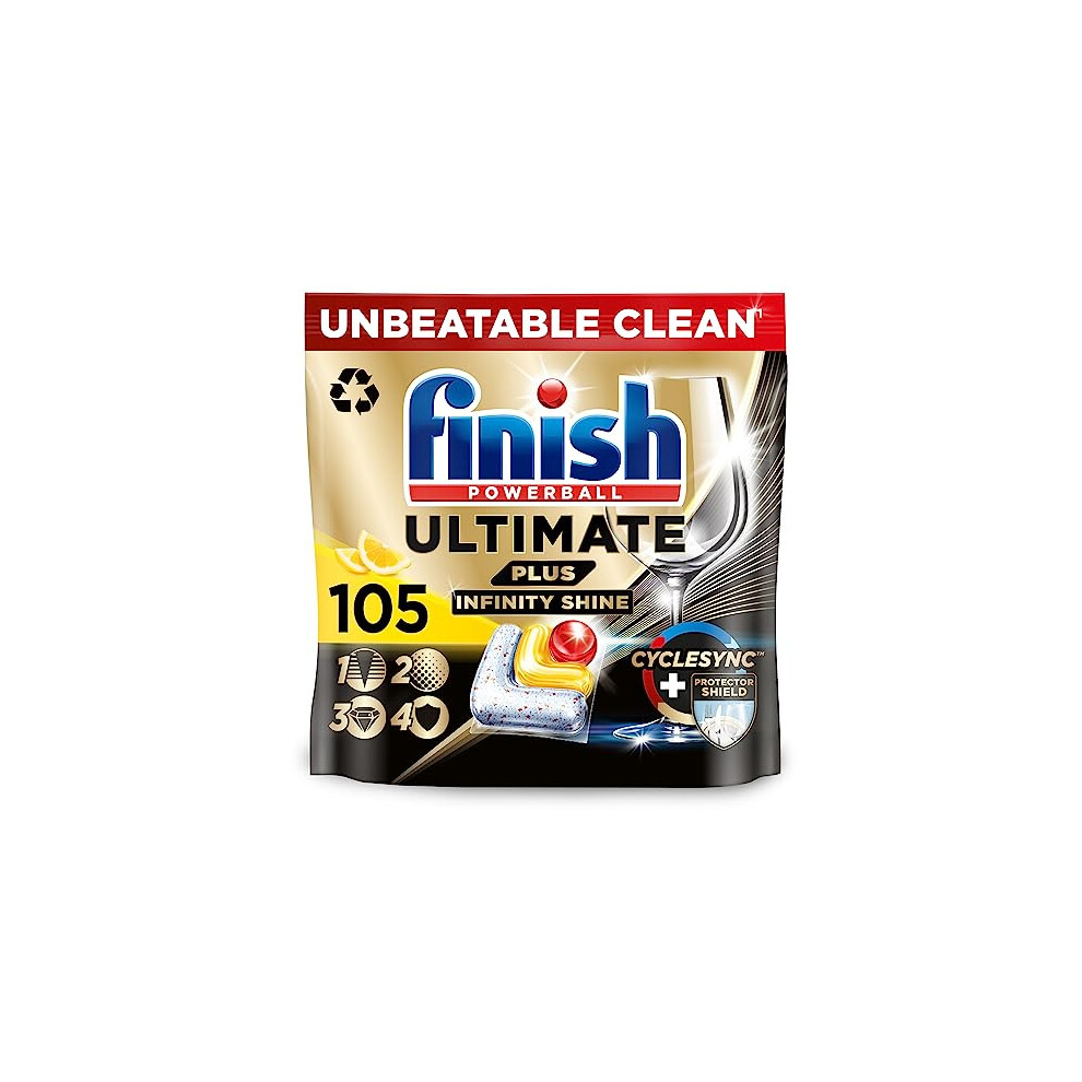 Finish Dishwasher Tablet, Ultimate Plus Infinity Shine, 105 Detergent Tablets, Lemon Sparkle, Tough on Grease, For our Most Intensive Clean & Diamond Shine, Effective for Short Eco Cycle