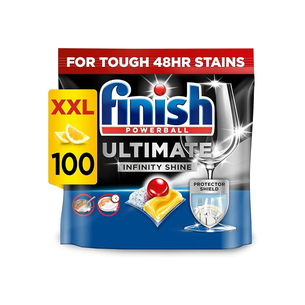 Finish Ultimate Infinity Shine Dishwasher Tablets Bulk Scent Lemon, Size : 100 Dishwasher tabs, For Ultimate Clean and Diamond Shine,package may vary