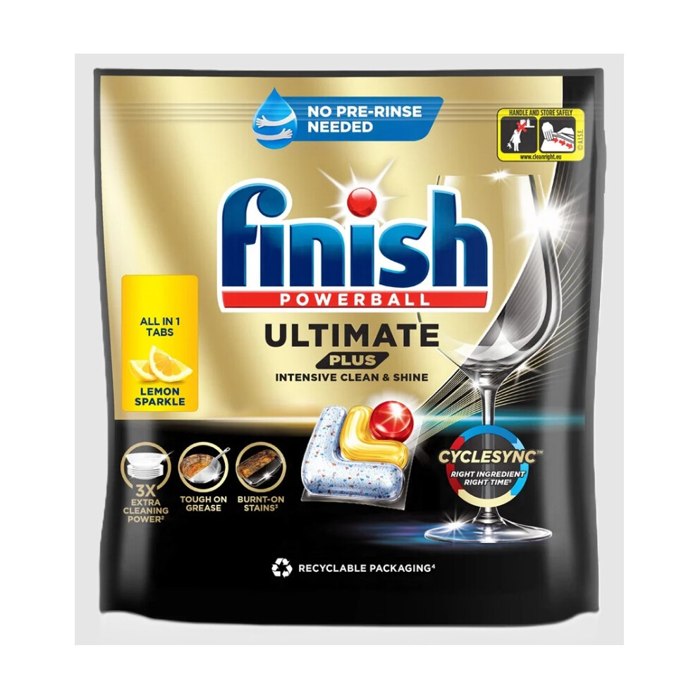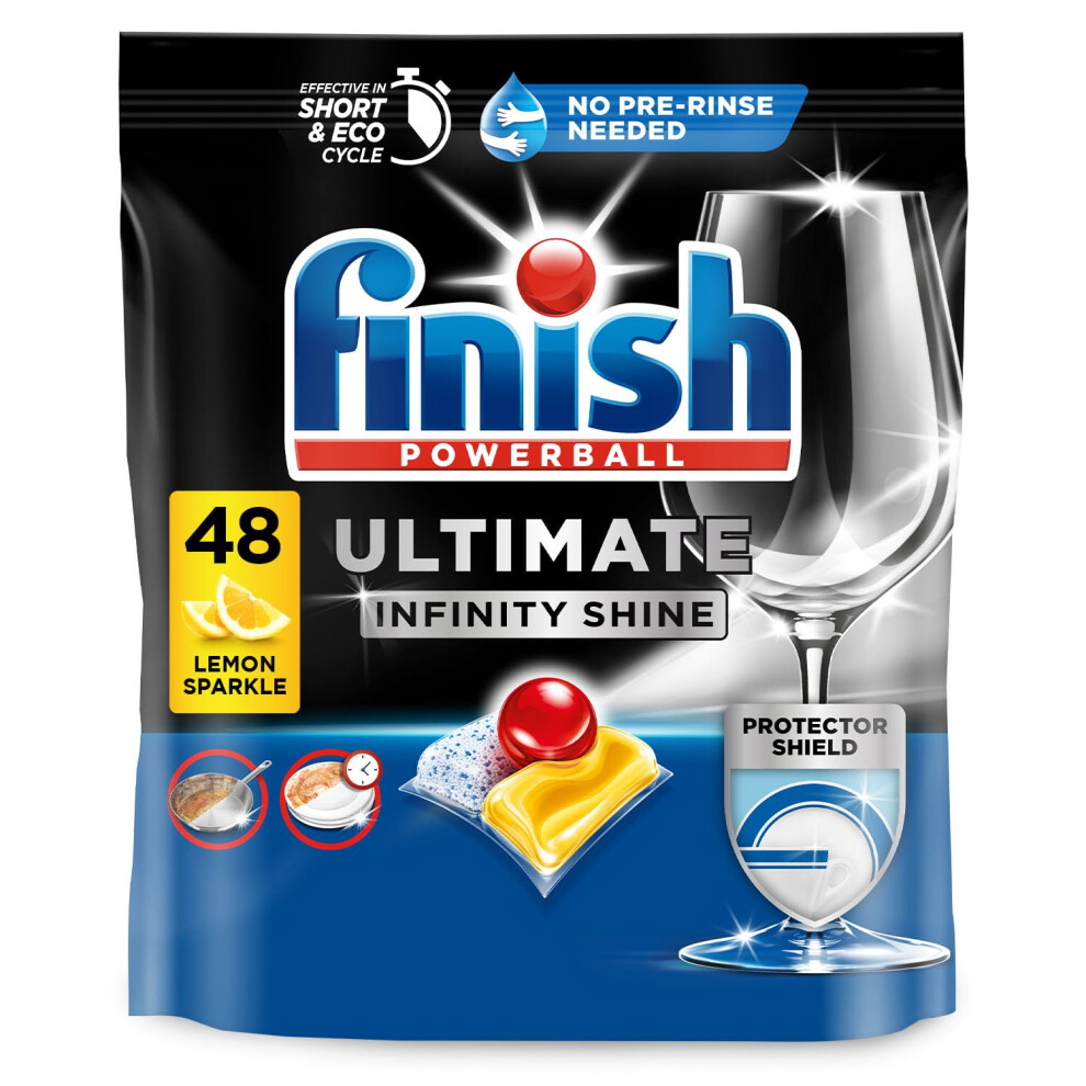 Finish Dishwasher Tablet, Ultimate, 48 Tablets, Lemon Sparkle, Clean & Shine Detergent Tabs, Tough on Grease Stains, Effective for Short Eco Cycle