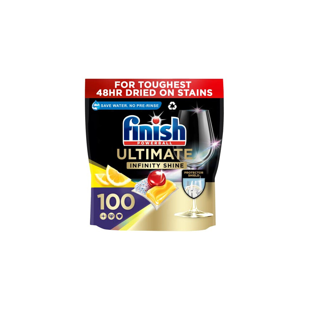 Finish Ultimate Infinity Shine Lemon Dishwasher Tablets - 100 Count, Eco-cycle Ready, No Pre-Rinse, Protector Shield