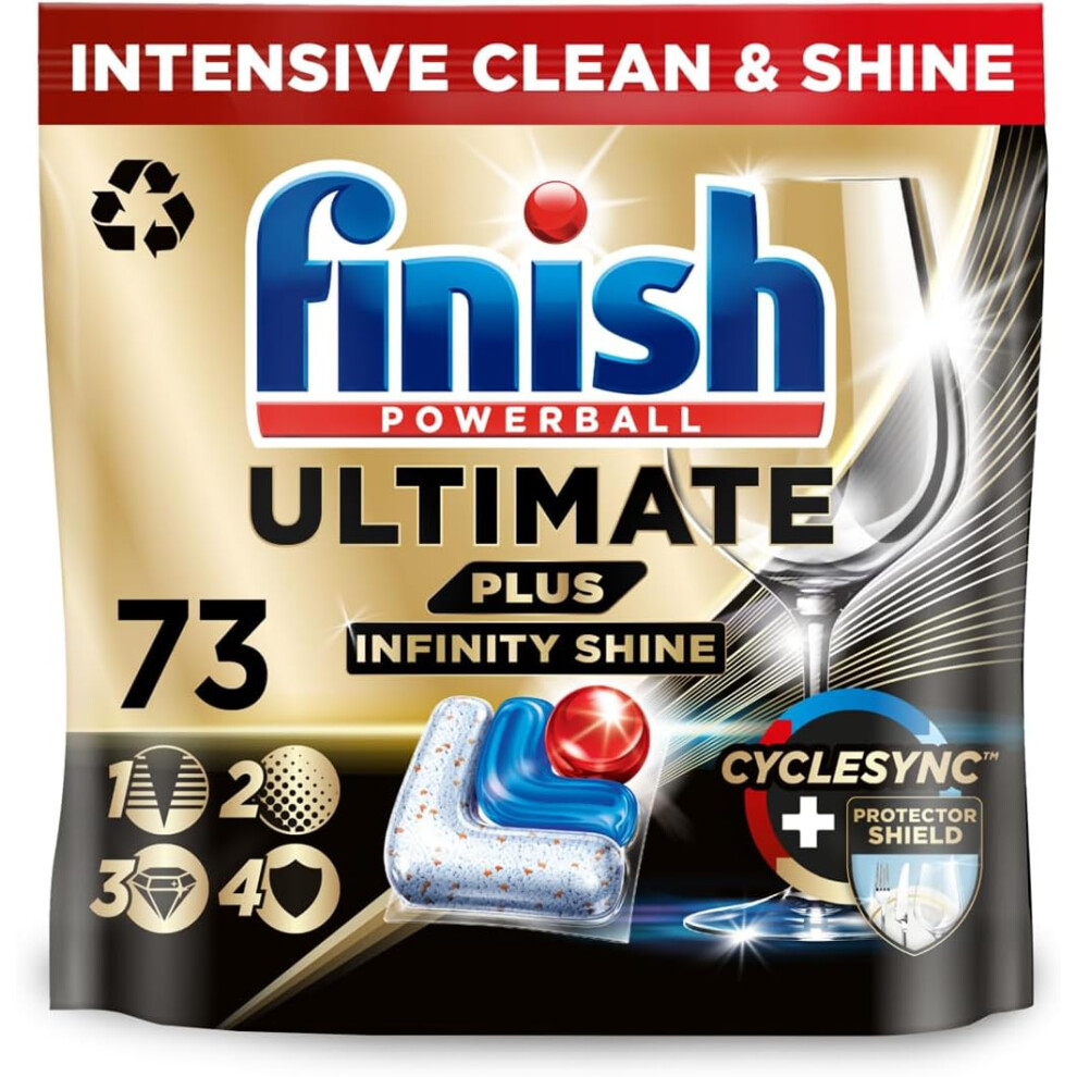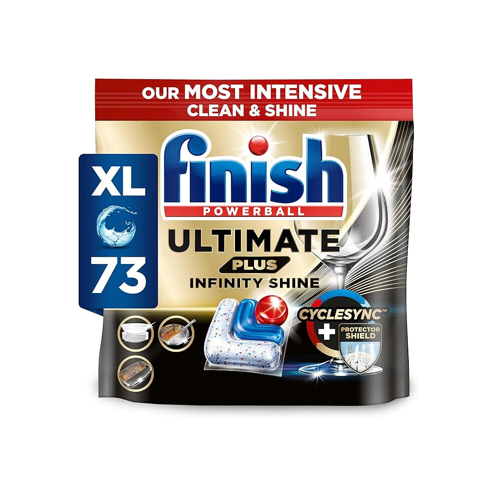 Finish Dishwasher Tablet, Ultimate Plus Infinity Shine, 73 Detergent Tablets, Fresh Scent, Tough on Grease, for Our Most Intensive Clean & Diamond Shine, Effective for Short Eco Cycle