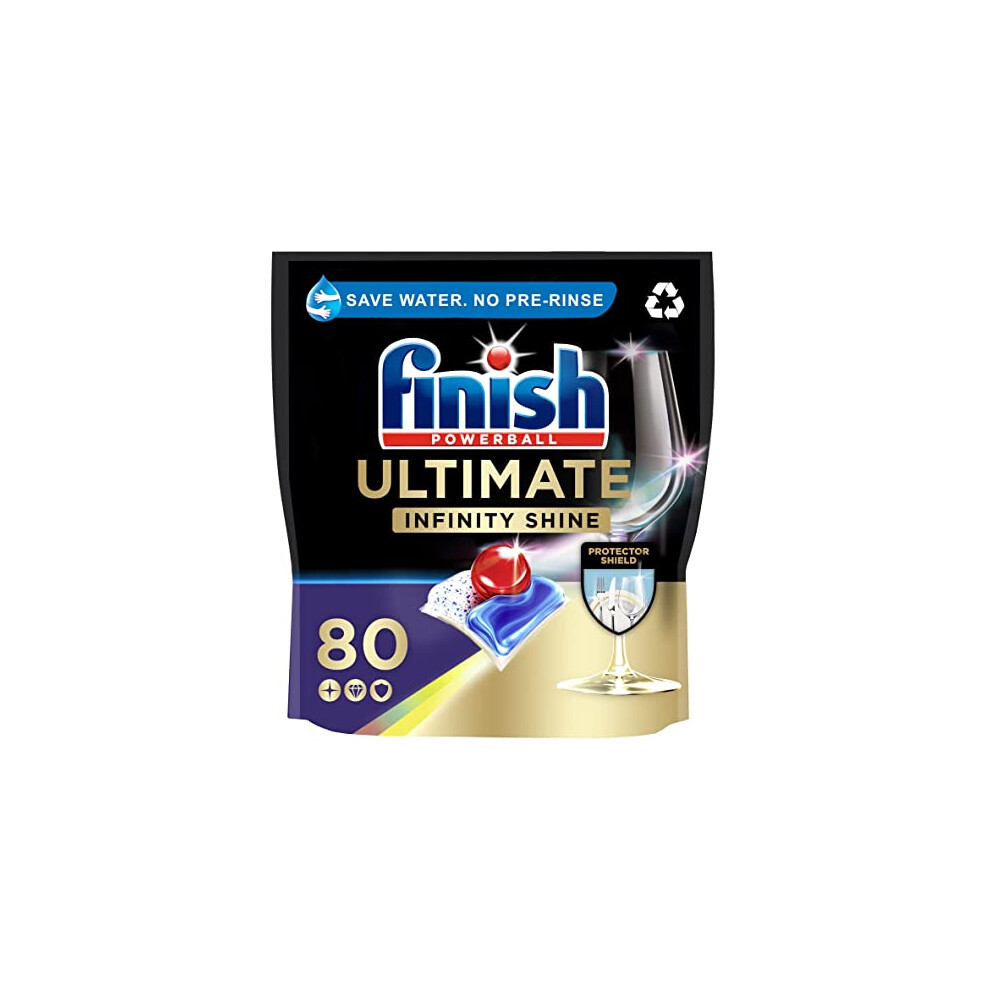 Finish Dishwasher Tablet, Ultimate Infinity Shine, 80 Tablets, Lemon Sparkle, Clean & Shine Detergent Tabs, Tough on Grease Stains, Effective for Short Eco Cycle