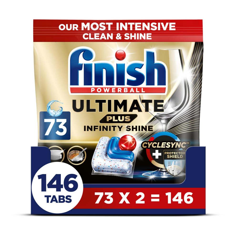 Finish Dishwasher Tablet, Ultimate Plus Infinity Shine, 146 Tabs (73 x 2pck), Fresh Scent, Tough on Grease, Our Most Intensive Clean & Shine, Effective for Short Eco Cycle