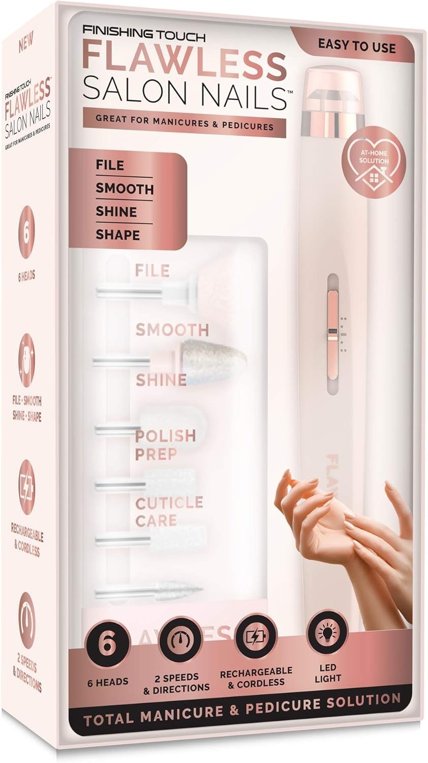 Finishing Touch Flawless Salon Nails Kit Electronic Nail File and Full Manicure and Pedicure Tool