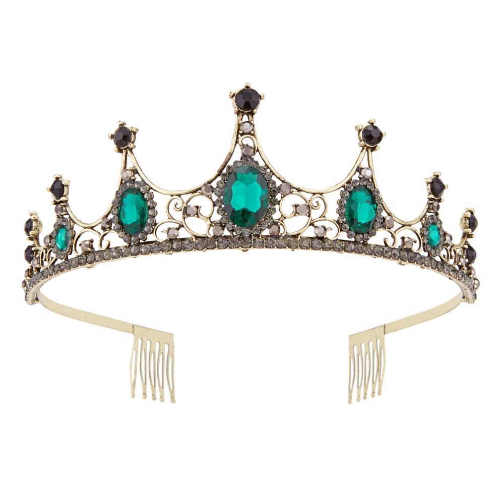 Green Crown Vofler Gold Black Tiara Statue of Liberty Fiona Anna Mermaid Costume Princess Emerald Vintage Crystal Headband Headpiece for Women Queen