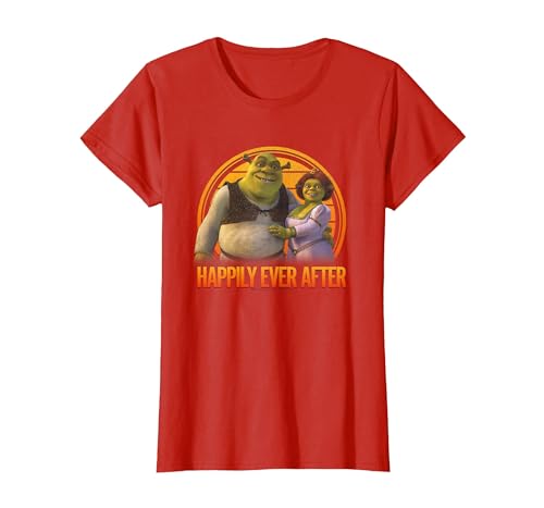 Shrek Happily Ever After Shrek Fiona Distressed Chest Logo T-Shirt, Women, Red, Small