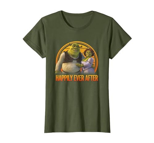 Shrek Happily Ever After Shrek Fiona Distressed Chest Logo T-Shirt, Women, Olive Green, XX-Large