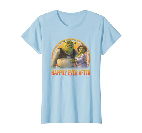 Shrek Happily Ever After Shrek Fiona Distressed Chest Logo T-Shirt, Women, Baby Blue, X-Large