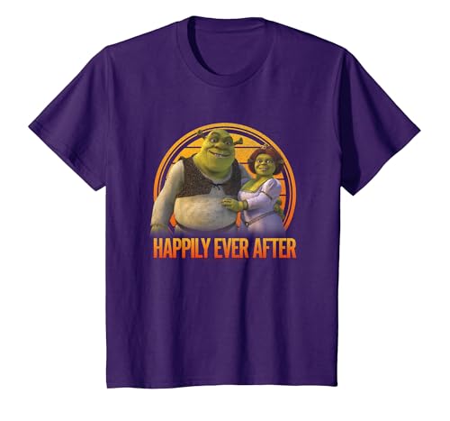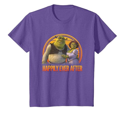 Shrek Happily Ever After Shrek Fiona Distressed Chest Logo T-Shirt, Youth, Purple Heather, Large