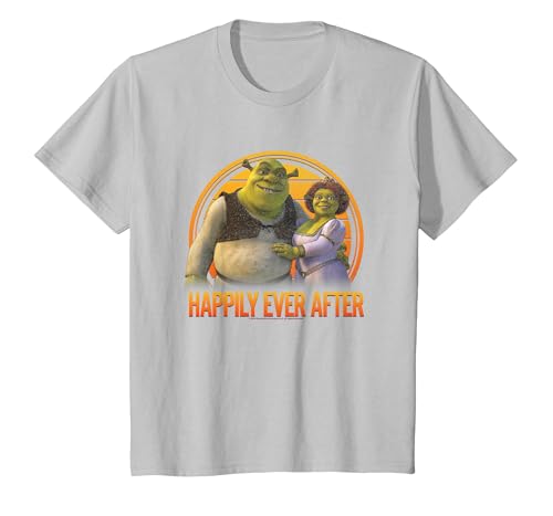 Shrek Happily Ever After Shrek Fiona Distressed Chest Logo T-Shirt, Youth, Silver Grey, 4T