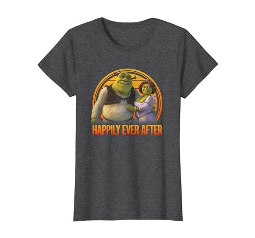 Shrek Happily Ever After Shrek Fiona Distressed Chest Logo T-Shirt, Women, Dark Heather Grey, X-Small
