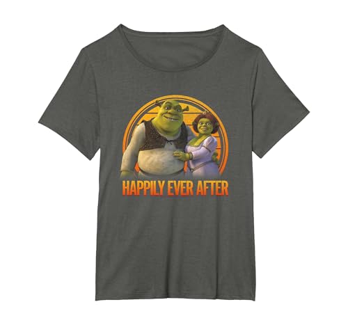 Shrek Happily Ever After Shrek Fiona Distressed Chest Logo T-Shirt, Women's Plus, Asphalt Grey, 3X