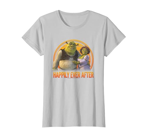 Shrek Happily Ever After Shrek Fiona Distressed Chest Logo T-Shirt, Women, Asphalt Grey, Medium