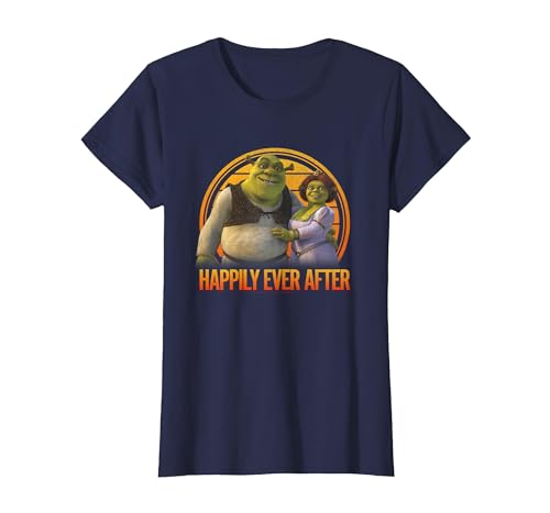 Shrek Happily Ever After Shrek Fiona Distressed Chest Logo T-Shirt, Women, Navy Blue, X-Small