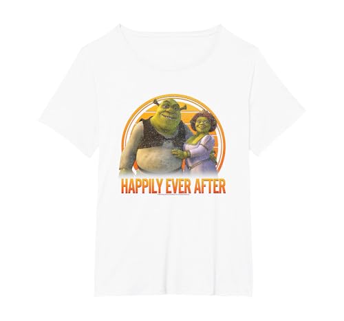 Shrek Happily Ever After Shrek Fiona Distressed Chest Logo T-Shirt, Women's Plus, White, 6X