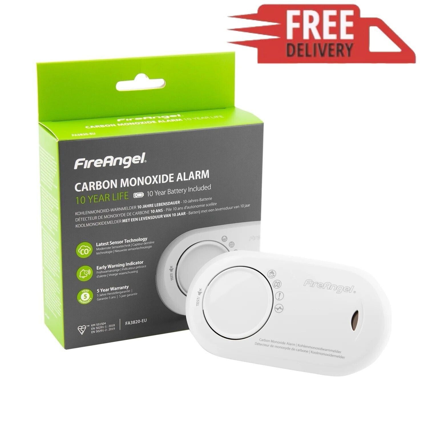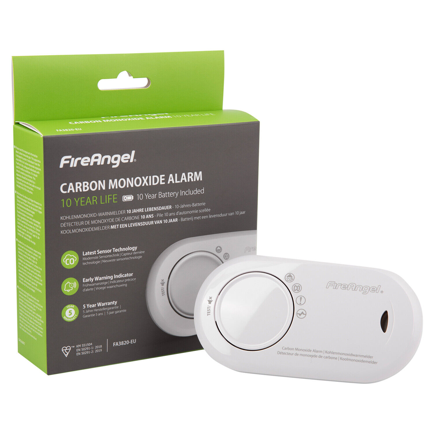 FireAngel Carbon Monoxide Alarm FA3820-EU 10yr battery EarlyWarning Indicator