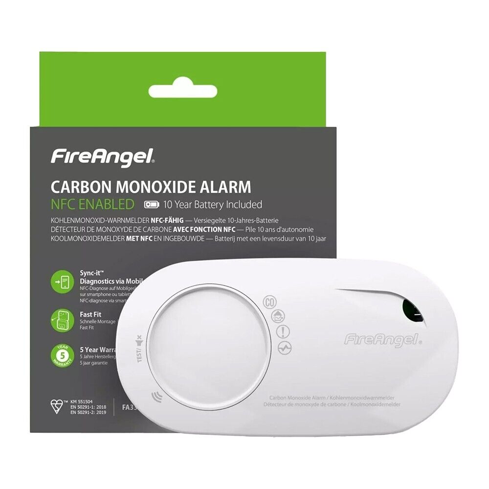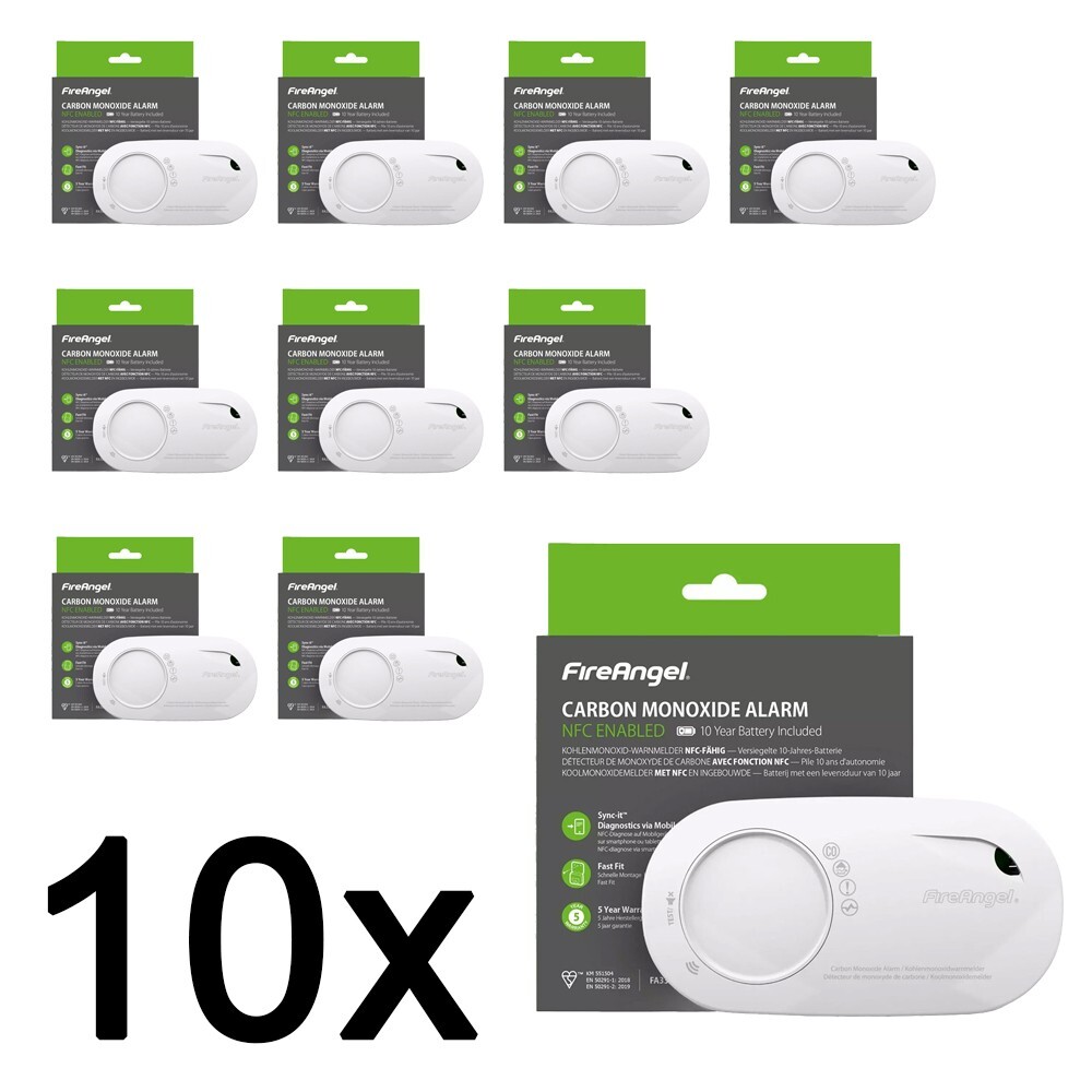 10x FireAngel FA3328-EUT Carbon Monoxide Alarm NFC Enabled 10 Year Battery