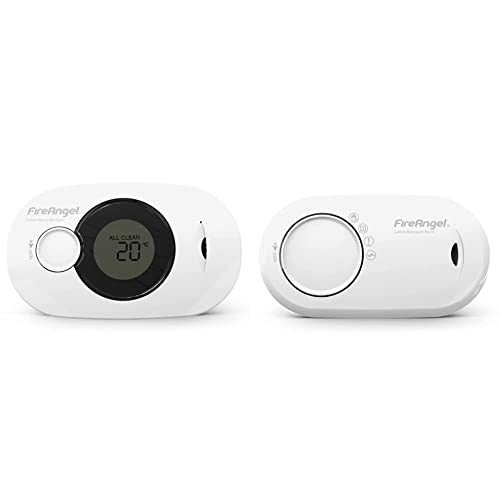 Fireangel FA3322 Digital CO Alarm with 10 Year Sealed For Life Battery and includes Temperature and Humidity Sensing and Warnings & FireAngel FA3820 10 Year Sealed Battery Alarm Carbon Monoxide, Clear