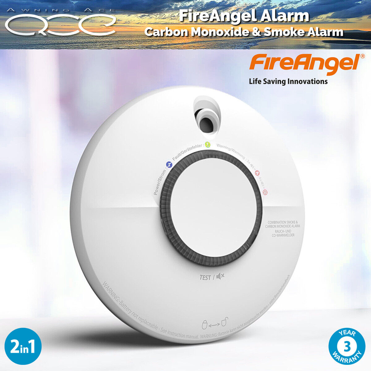 FireAngel Smoke and Carbon Monoxide Alarm Caravan Boat 10yr Battery