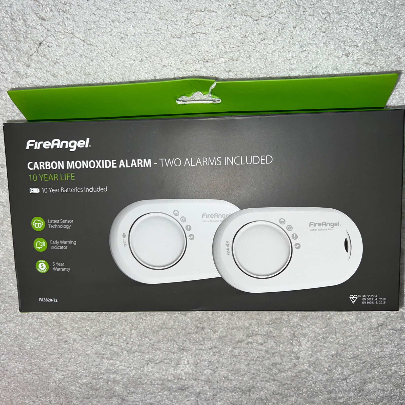 FireAngel Carbon Monoxide Alarm FA3820 10 yr battery new boxed free post