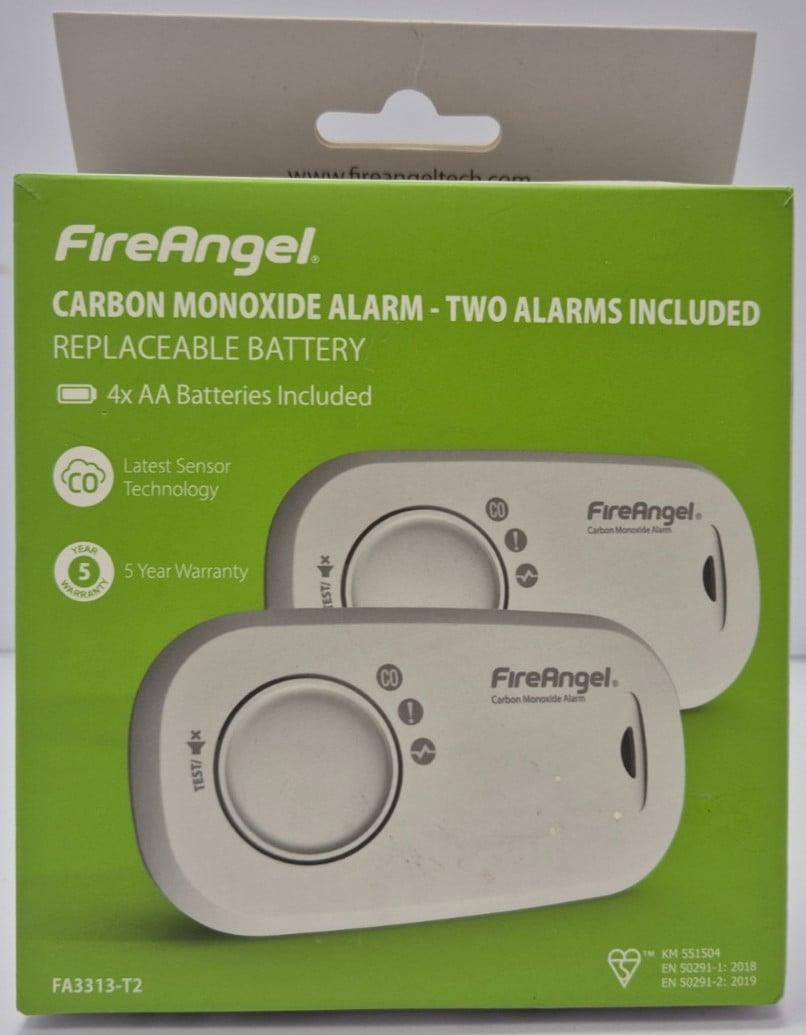 FireAngel FA3313-EU Carbon Monoxide Alarm Detector Replaceable Battery Pack of 2