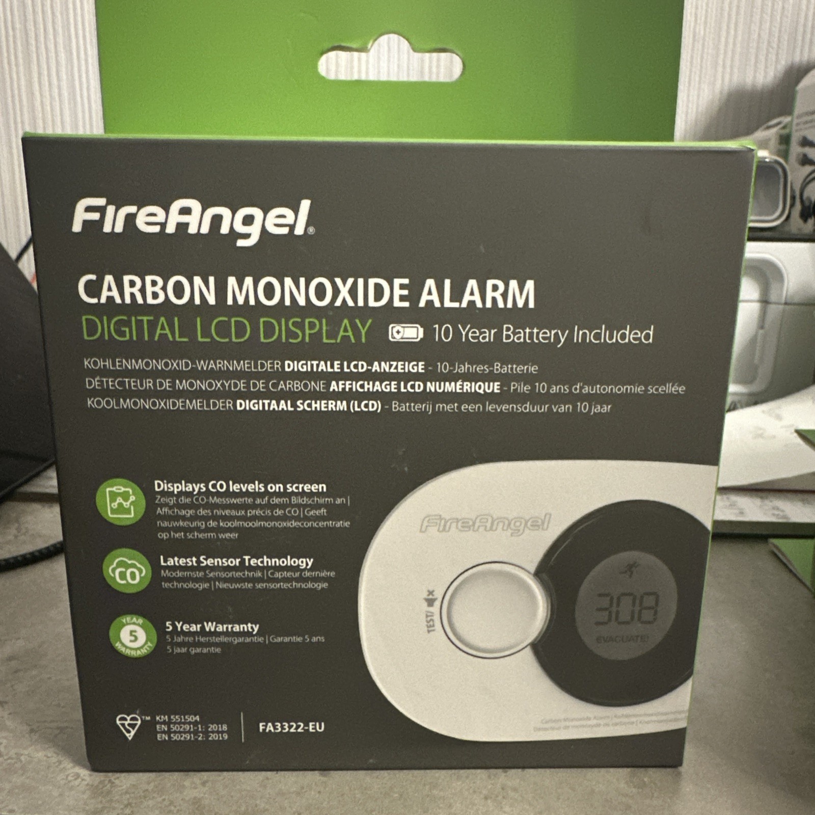 FireAngel Carbon Monoxide Alarm - FA3322-EU Digital LCD Display 10yr Battery NEW