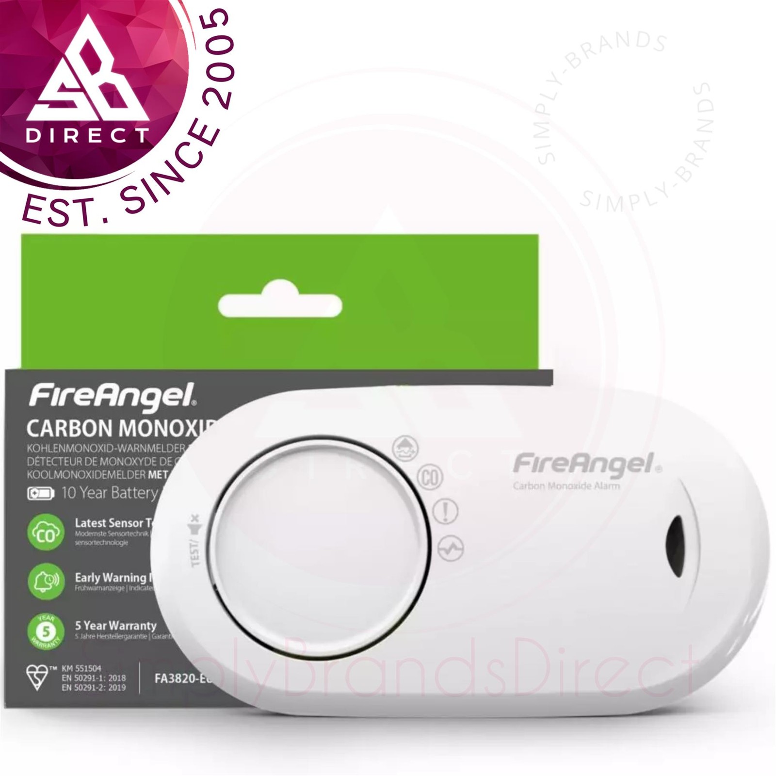 FireAngel FA3820 Carbon Monoxide Alarm 10-Year Sealed Battery 100% NEW ⭐⭐⭐⭐⭐