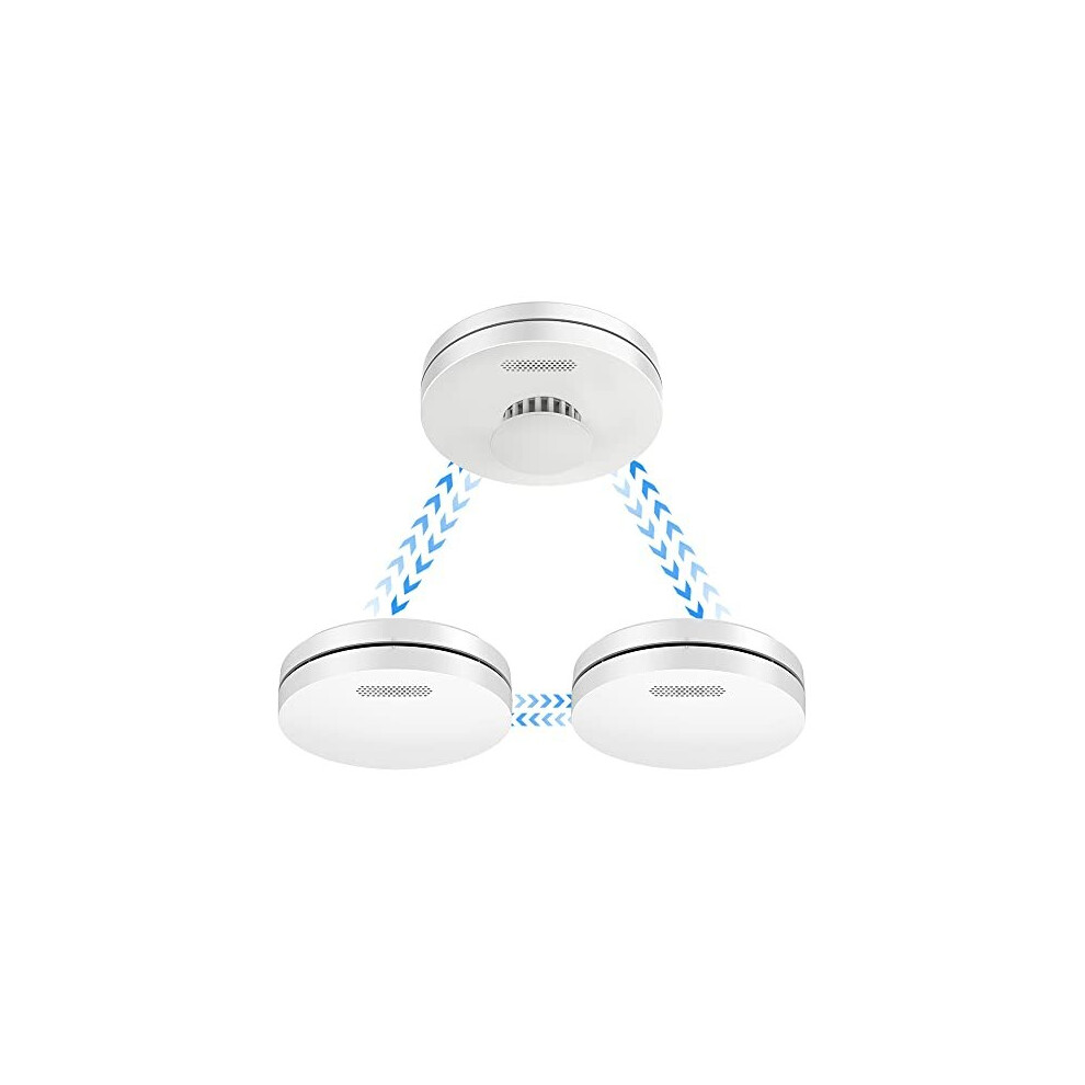 Wireless Interlinked Smoke Alarm with 10 Year Battery Life, EN14604, CE Certified, Interconnected Fire Alarm, Low-Battery Alert.1 Pack