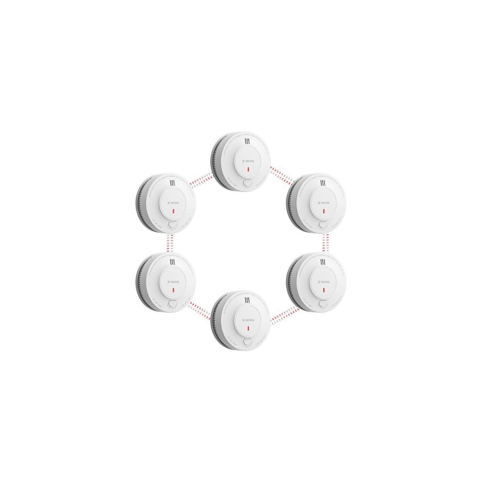 Wireless Interlinked Smoke Alarm 6 Pack, 10 Years Lithium Battery Powered Wireless Networked Smoke Detectors for Home by 433MHz, 85dB Audible Alarms for Fire Warning