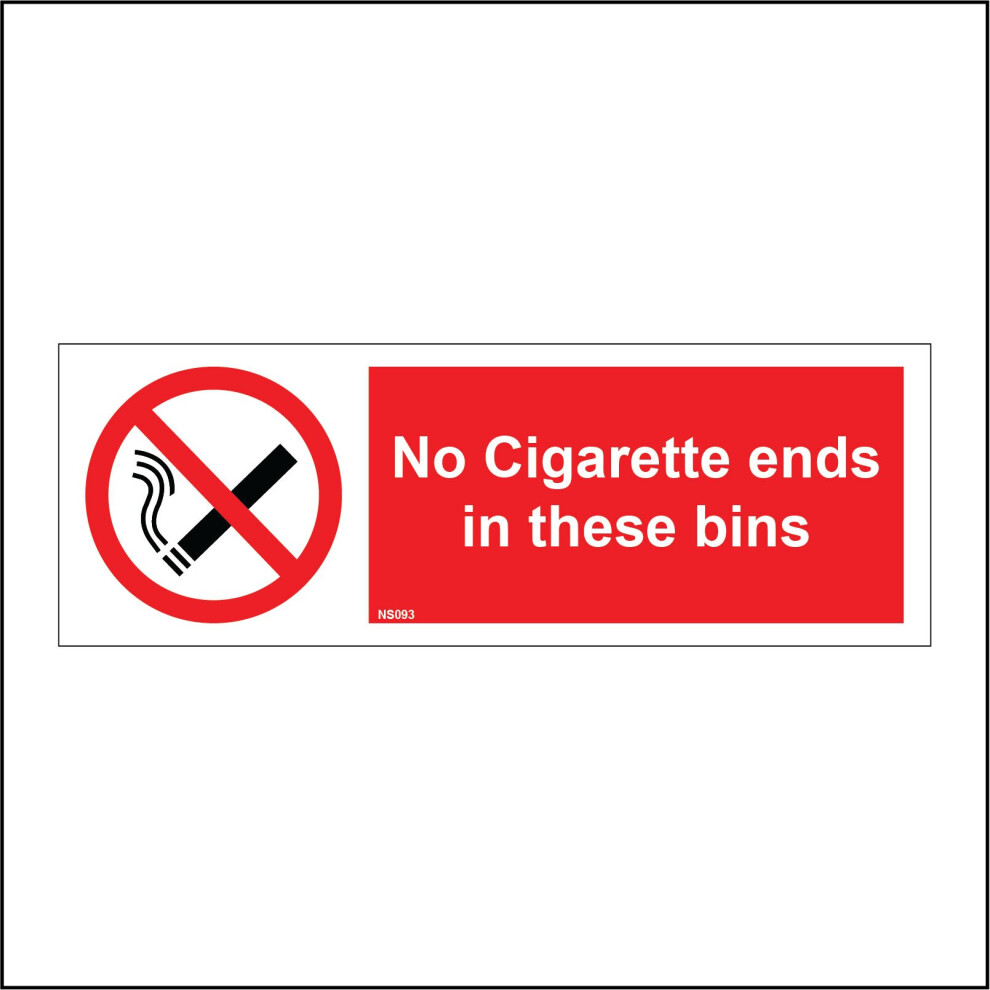 (300 x 100mm - 12 x 4, D - 1mm Pvc Foamex) NS093 No Cigarette Ends In These Bins Sign Smoke Burn Paper Fire Flammable 600mm x 200mm B - Magnetic - Veh