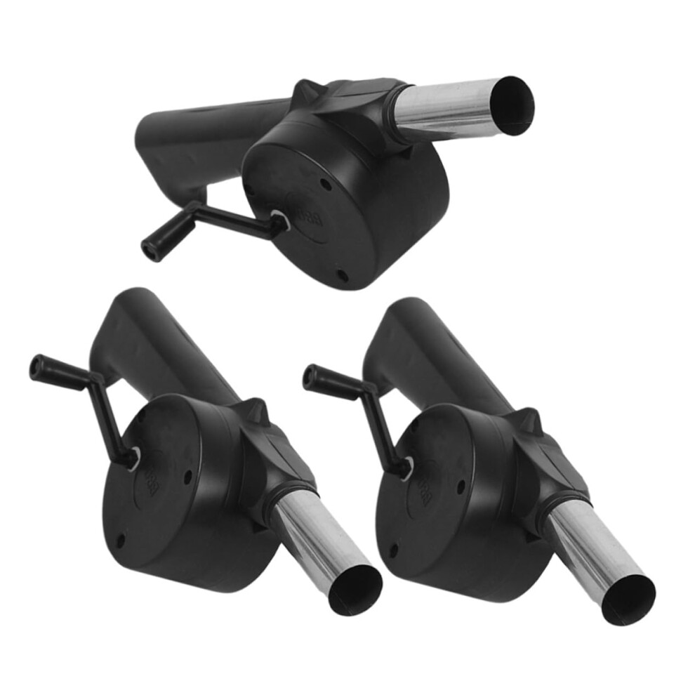 3Pcs Portable Hand Crank Fire Blower Fan, Lightweight Metal BBQ Air Blower For Outdoor Camping Grilling