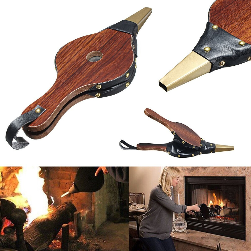 Vintage Mini Hand Bellows Dark Brown Fireplace Blower Traditional Stove Fire Lighter Fan For Home Diy Fireside Accesso