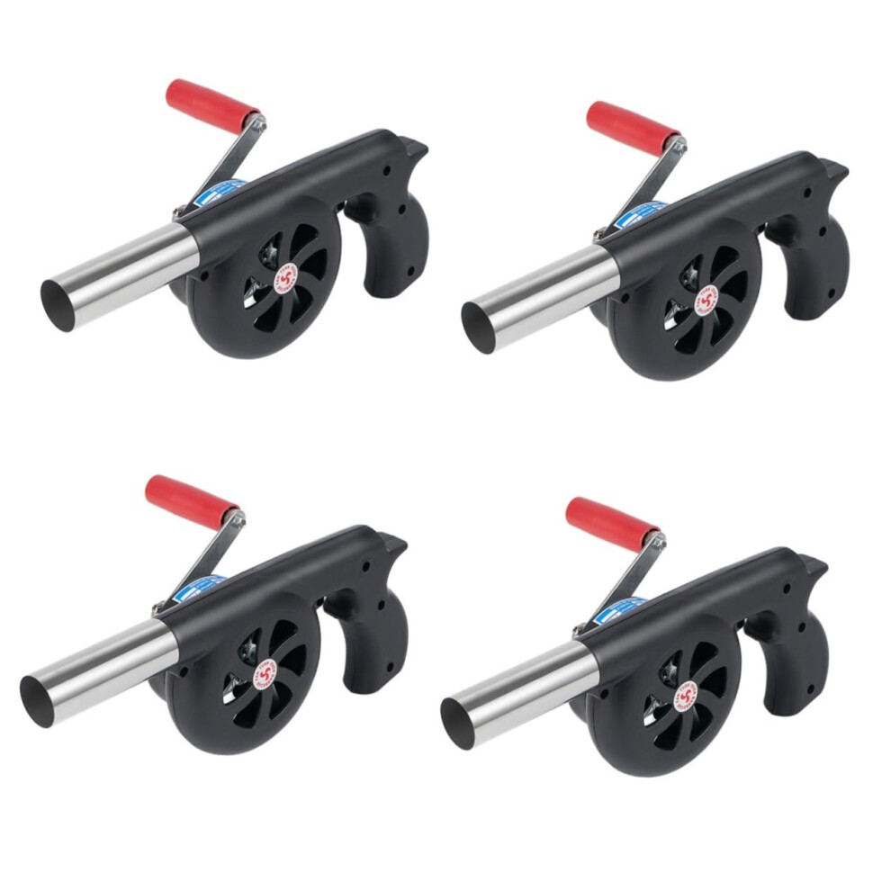 4pcs Outdoor Hand Crank BBQ Grill Blower Portable Fire Blower Fan with Comfort Grip for Camping and Grilling