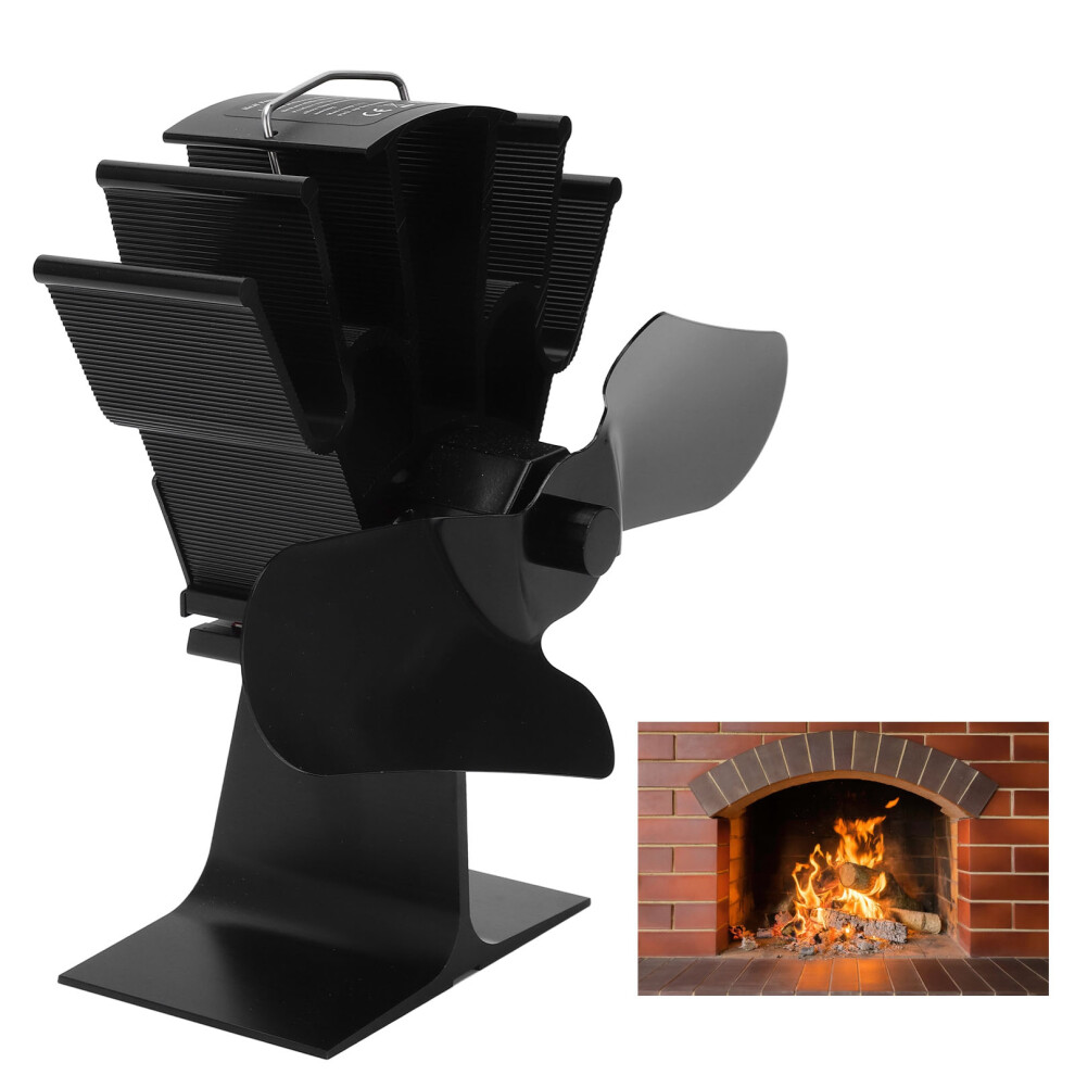 2 Blade Heat Powered Fire Fireplace Fan, 1200RPM, Low Noise, 21x14x12cm
