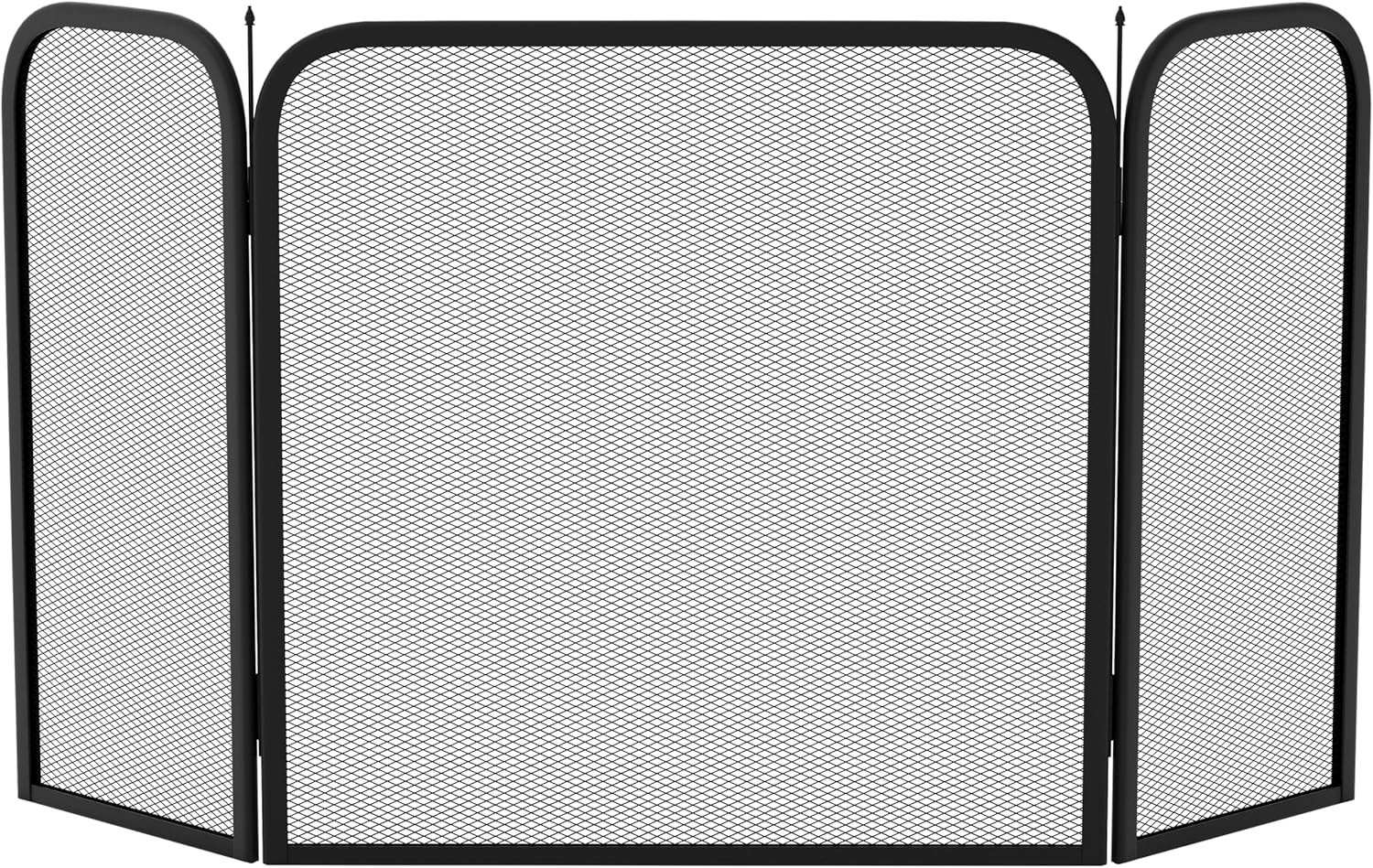Fire Vida Roxby 3-Panel Fire Guard, Black Steel Spark Guard for Wood & Coal Fires, Folding Decorative Flame Protector for Indoor Safety